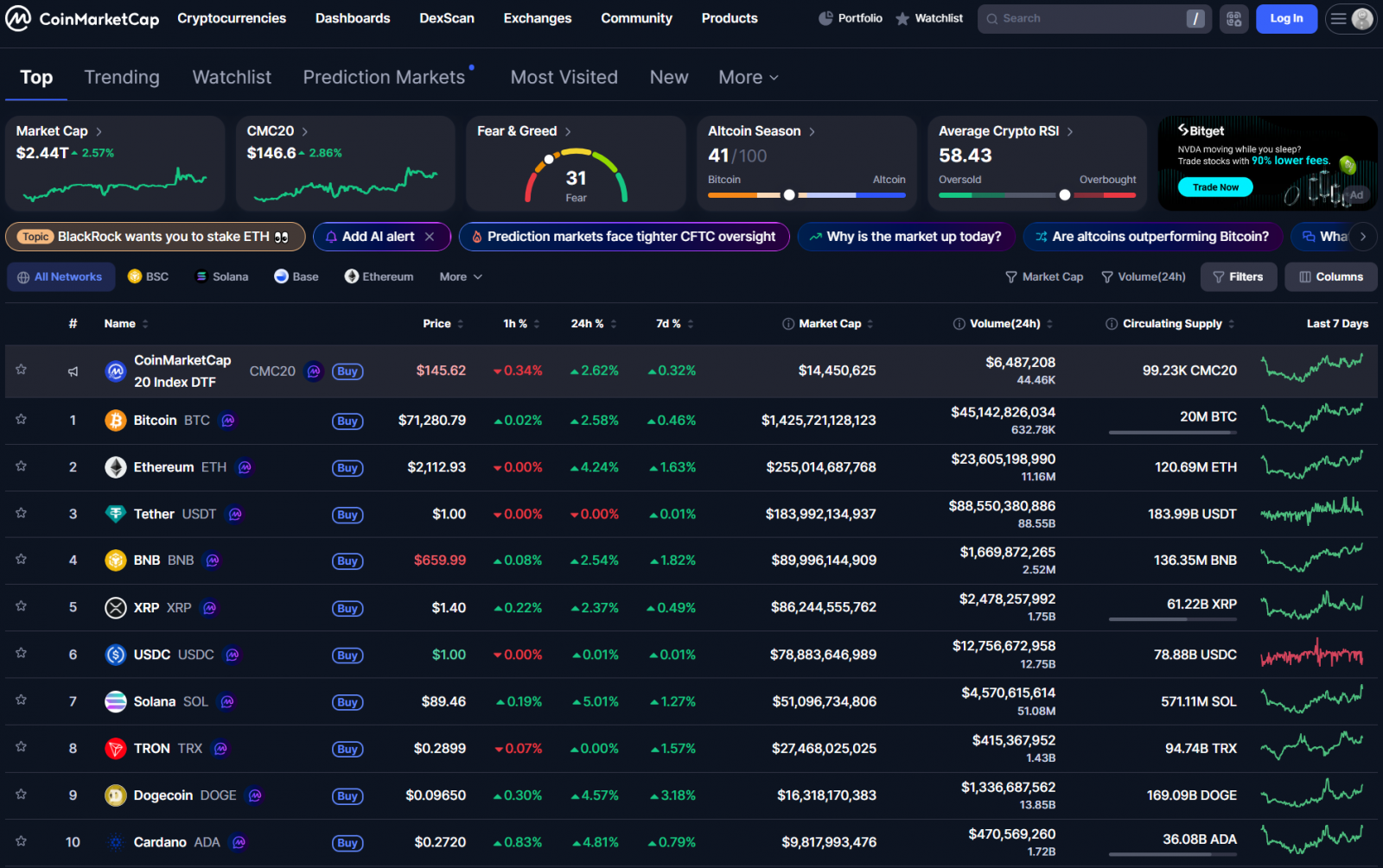 Bitcoin đã tăng lên quanh 71,000 USD. Các altcoin cũng tăng đáng kể. Vốn hóa thị trường crypto tăng lên 2.44 nghìn tỷ USD.