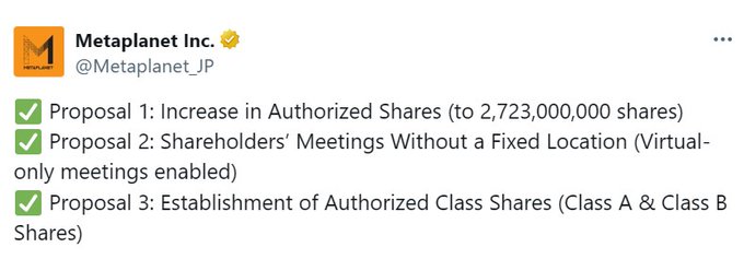 Các công ty và tổ chức trên toàn cầu đang đẩy mạnh việc tích lũy và áp dụng crypto, phản ánh sự tăng trưởng nhanh chóng của thị trường crypto. Tại Nhật Bản, Metaplanet vừa được cổ đông thông qua kế hoạch huy động vốn quy mô lớn để theo đuổi chiến lược tích lũy Bitcoin. Công ty dự kiến phát hành tối đa 2.7 tỷ cổ phiếu, gồm cổ phiếu A với tính an toàn cao và trả cổ tức cố định, mang lại thu nhập ổn định, và cổ phiếu B rủi ro hơn nhưng có thể chuyển đổi thành cổ phiếu thường nếu chiến lược Bitcoin thành công. Với cơ cấu này, Metaplanet có thể huy động tới 3.7 tỷ USD mà vẫn hạn chế pha loãng cổ đông hiện tại, nhằm đạt mục tiêu nắm giữ 210,000 Bitcoin trước năm 2027. Hiện công ty đã nằm trong nhóm sáu doanh nghiệp toàn cầu có lượng dự trữ Bitcoin lớn nhất.