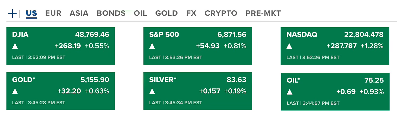Thị trường chứng khoán Mỹ cuối phiên thứ tư (04/03-US) với Dow Jones tăng 0.55%, Nasdaq tăng 1.28% và S&P 500 tăng khoảng 0.81% dù chiến sự vẫn tiếp diễn. Giá dầu tương lai ban đầu tăng mạnh nhưng sau đó đã ổn định quanh 75 USD/thùng khi nhà đầu tư đánh giá tác động thực tế của eo biển Hormuz, trong khi chính quyền Tổng thống Trump cam kết bảo vệ các tuyến vận chuyển và phản ứng cần thiết. Vàng cũng đã ổn định quanh 5155 USD/ounce.