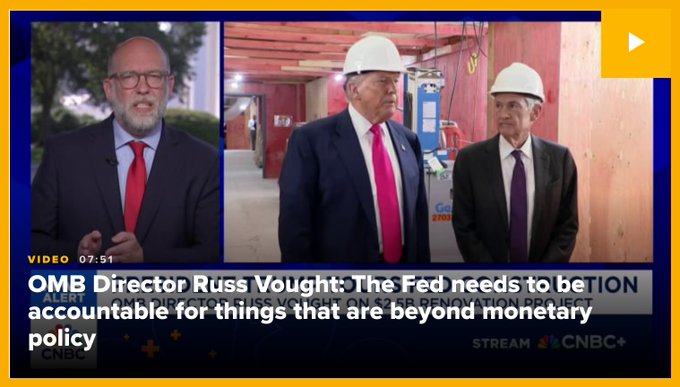 Tổng thống Trump đăng trên Truth Social về chuyến thăm công trình cải tạo một phần Tòa nhà Cục Dự trữ Liên bang cùng Chủ tịch Jerome Powell và Thượng nghị sĩ Tim Scott. Ông chỉ trích dự án chi phí cao, tiến độ chậm và cho rằng không nên khởi công ngay từ đầu, nhưng cũng thừa nhận nền kinh tế Mỹ đủ mạnh để chi trả. So sánh với dự án cải tạo Tòa nhà Bưu điện Cũ do ông thực hiện với chi phí thấp hơn, Trump nhấn mạnh điều quan trọng là phải sớm hoàn thành công trình và giảm lãi suất.