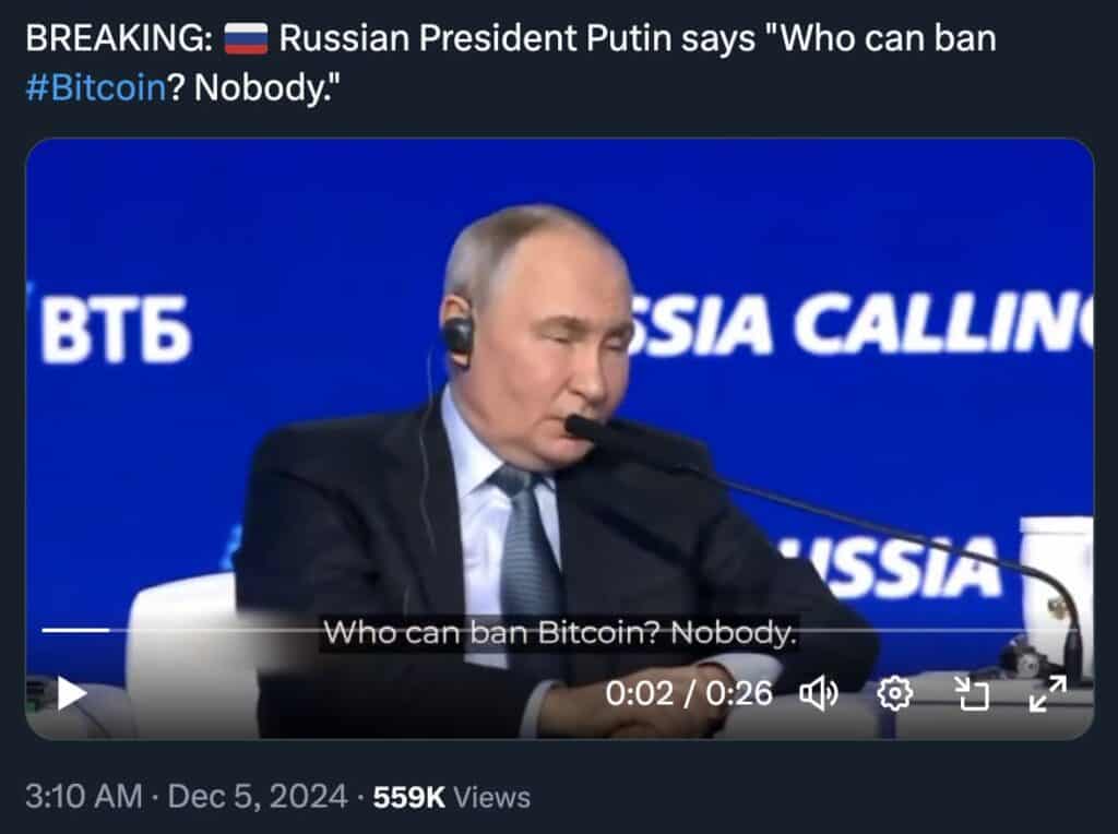 Với sự phát biểu của tổng thống Nga cho thấy sự thay đổi quan điểm rất lớn của nước này. Gần đây, Nga cũng lên tiếng ủng hộ tài sản kỹ thuật số làm phương tiện thanh toán từ sau khi bị cấm vận.