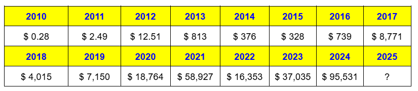 Đến nay, thị trường và thế giới đã không thể làm ngơ BTC và thực sự BTC có sự ảnh hưởng nhất định. Vốn hóa tăng khiến BTC trở thành tài sản lớn thứ 7 trên thế giới.