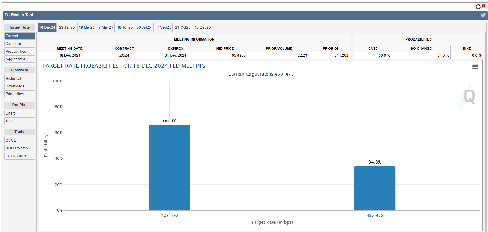 CPE tốt khiến cho các nhà đầu tư trên CME đã tăng kỳ vọng cho việc FED sẽ tiếp tục giảm thêm 0.25% lãi suất trong cuộc họp tháng 12 tới đây.
