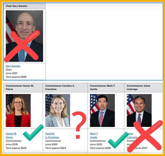 Ủy viên SEC, Jaime Lizárraga sẽ từ chức. Ông là một trong ba thành viên được cho là có quan điểm anti-crypto bên cạnh ông Gary Gensler, có thể làm giảm sức ảnh hưởng của nhóm này. Nếu thành viên thay thế có quan điểm ủng hộ crypto, cán cân trong SEC có thể thay đổi, mở ra cơ hội cho các chính sách thân thiện hơn với tiền điện tử.