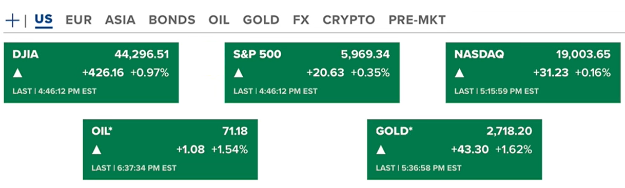 Chứng khoán Hoa Kỳ thứ sáu (22/11) kết thúc với sự tăng trưởn ở cả ba chỉ số, dẫn đầu là Nasdaq với 0.97%. Hợp đồng và cũng tăng lên 2718 USD/ounce. Còn dầu tăng lên 71 USD/ounce.