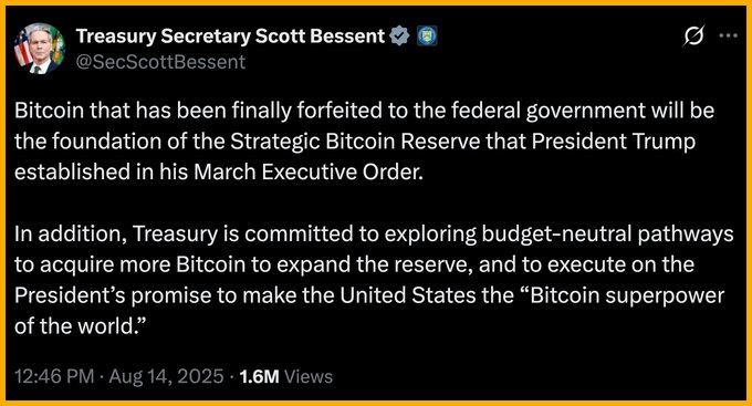 Tuy nhiên, ngay sau đó, Bessent đã rút lại phát biểu trên Fox News và đính chính trên mạng X rằng Bitcoin bị tịch thu và chuyển giao cho chính phủ sẽ là nền tảng của Quỹ Dự trữ Bitcoin Chiến lược do Tổng thống Trump thành lập theo Sắc lệnh Hành pháp ban hành tháng 3. Bộ Tài chính sẽ tiếp tục tìm kiếm các phương án “trung hòa ngân sách” để mua thêm BTC, nhằm mở rộng quỹ này, phù hợp với mục tiêu của Tổng thống Trump biến Mỹ thành “siêu cường Bitcoin của thế giới”.
