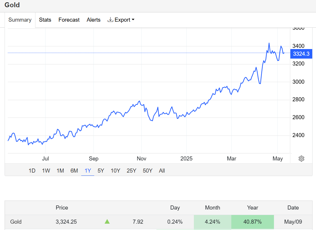 Trong 12 tháng qua, vàng ghi nhận mức tăng trưởng vượt trội: 40.87% trong năm, và 26.72% từ đầu năm. Dù đây là một năm đặc biệt, nhưng vàng vẫn duy trì lợi nhuận trung bình 8.4%/năm trong 20 năm — một minh chứng cho sức mạnh dài hạn. Hiện vàng là tài sản có vốn hóa lớn nhất thế giới với hơn 22,000 tỷ USD.