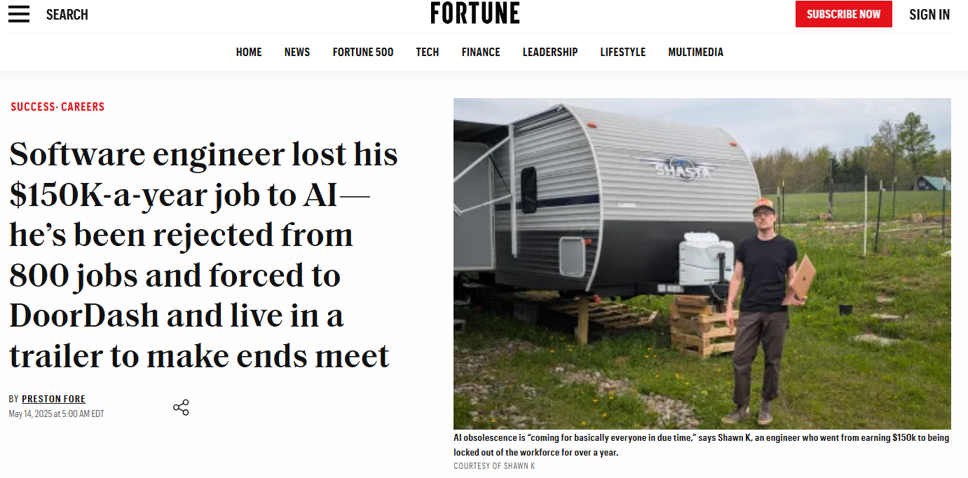 Một bài viết được chia sẻ bởi Fortune đã phản ánh một thực tế đáng lo ngại, một kỹ sư phần mềm từng kiếm 150,000 USD/năm đã bị thay thế bởi AI và buộc phải chuyển sang giao đồ ăn sau hơn 800 lần xin việc thất bại – đây là một ví dụ rõ ràng cho làn sóng mất việc do trí tuệ nhân tạo gây ra. AI đang thay thế nhanh chóng các công việc vốn từng đòi hỏi kỹ năng cao như chỉnh sửa văn bản, phân tích dữ liệu hay lập trình, tương tự cách robot từng thay thế công nhân trong các nhà máy.