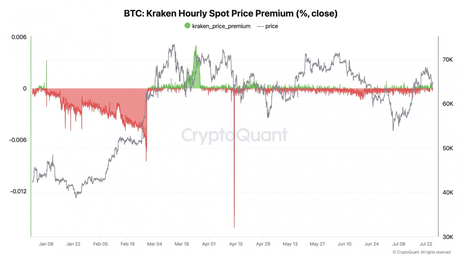 Dựa theo Ki Young Ju, CEO của CryptoQuant chia sẻ rằng, khối lượng giao dịch trên sàn Kraken vẫn rất bình thường, giá BTC trên sàn Kraken cũng như các sàn khác (không có dấu hiệu có lực bán mạnh).