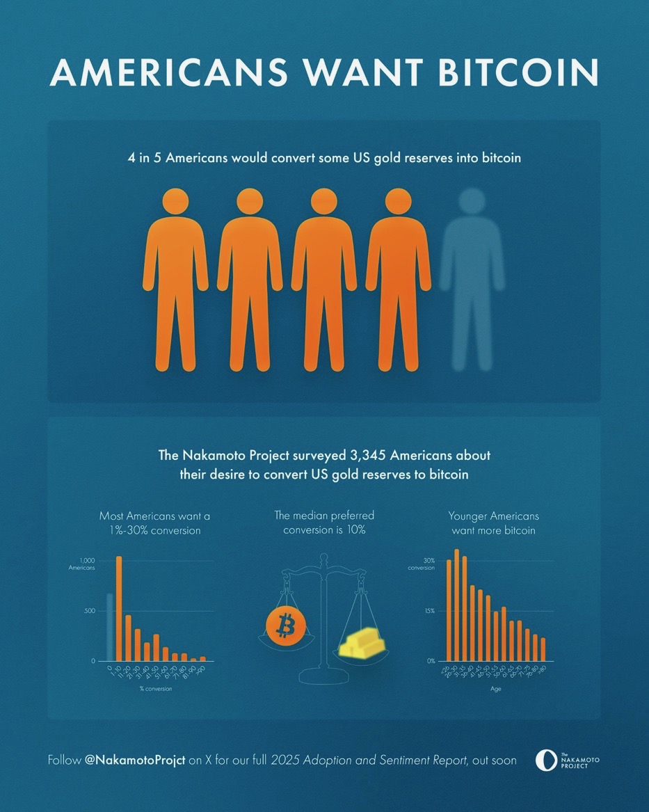 Thượng nghị sĩ Cynthia Lummis cũng chia sẻ nghiên cứu từ the Nakamoto Project. Nghiên cứu cho thấy, 80% người dân Mỹ ủng hộ việc chuyển một phần dự trữ vàng của Hoa Kỳ sang Bitcoin. Phần lớn người được khảo sát ưa chuộng tỷ lệ chuyển đổi khiêm tốn, trong khoảng 1% đến 30%. Tỷ lệ chuyển đổi trung vị là 10%, được minh họa bằng hình ảnh cán cân giữa Bitcoin và vàng. Thế hệ trẻ thể hiện sự quan tâm mạnh mẽ hơn đến Bitcoin, với tỷ lệ chuyển đổi mong muốn cao hơn ở nhóm tuổi trẻ hơn.
