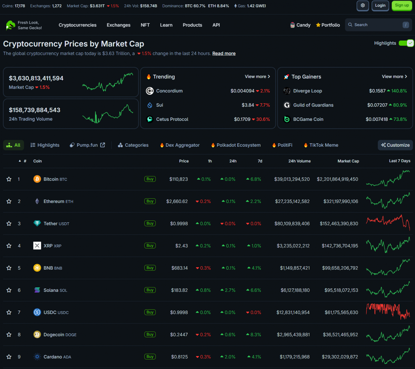 Bitcoin sau khi tăng lên mức đỉnh mới 11,000 USD thì trở về quanh 110,000 USD. CÁc altcoin lớn đa số tăng nhẹ. Vốn hóa thị trường crypto là 3.63 nghìn tỷ USD.