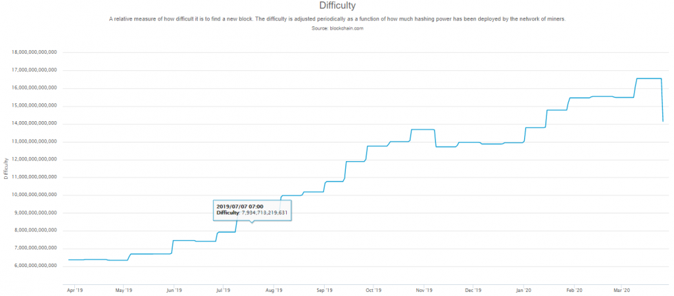 Nguyên nhân chính xác khiến độ khó đào giảm xuống thì không có chính xác nhưng một số giả thuyết về nguyên nhân giảm tốc độ đào của bitcoin được đã được đưa ra. Một trong số đó là do ảnh hưởng của dịch bệnh nên một số xưởng đào đã đóng cửa theo yêu cầu của chính phủ nên họ tắt máy đào.
