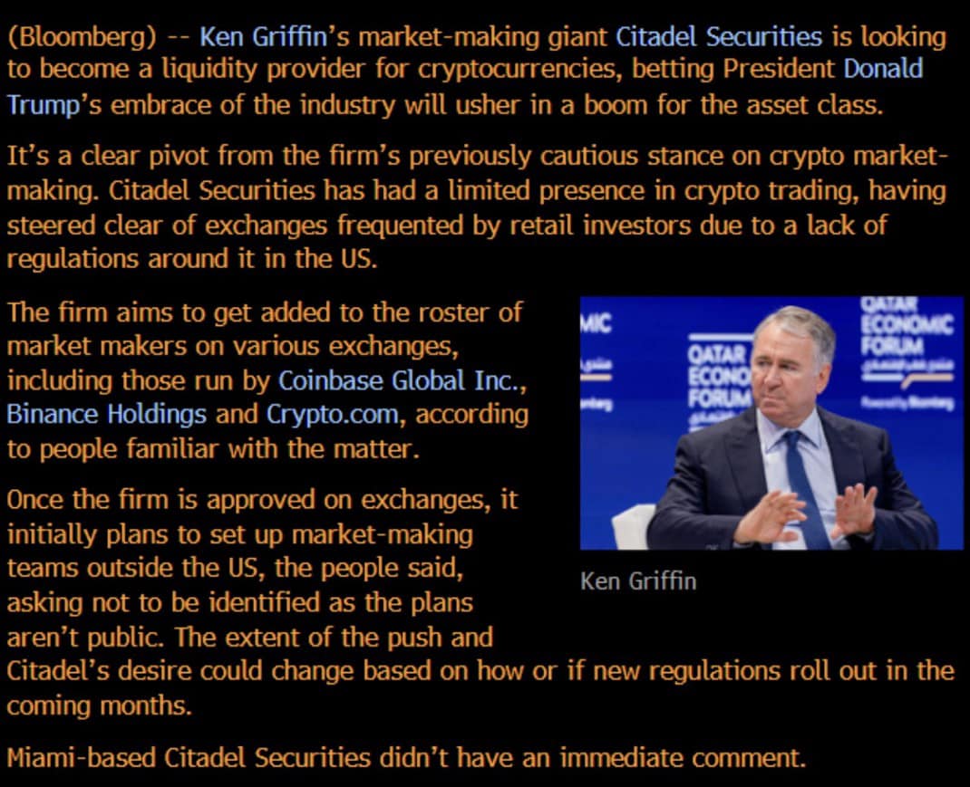 Ngoài ra, thông tin liên quan đến Citadel Securities cũng được đưa ra lúc thị trường điều chỉnh khiến nhiều người đặt câu hỏi có liên quan hay không. Công ty này do Ken Griffin lãnh đạo, đang lên kế hoạch cung cấp thanh khoản cho crypto, thay đổi quan điểm thận trọng trước đây. Công ty Citadel muốn trở thành nhà tạo lập thị trường trên các sàn như Coinbase, Binance và Crypto(.)com, đồng thời có thể mở rộng hoạt động ra ngoài Mỹ nếu quy định pháp lý cho phép. Công ty này bị cáo buộc từng tham gia vào thao túng và ngăn các nhà đầu tư lẻ mua cổ phiếu Gamestop. Thêm vào đó, để trở thành market maker, công ty này cũng cần nắm giữ crypto. Cho nên, một số giả thiết cho rằng có thế lực nào đó đẩy giá BTC xuống để những công ty này có thể mua crypto với giá thấp.