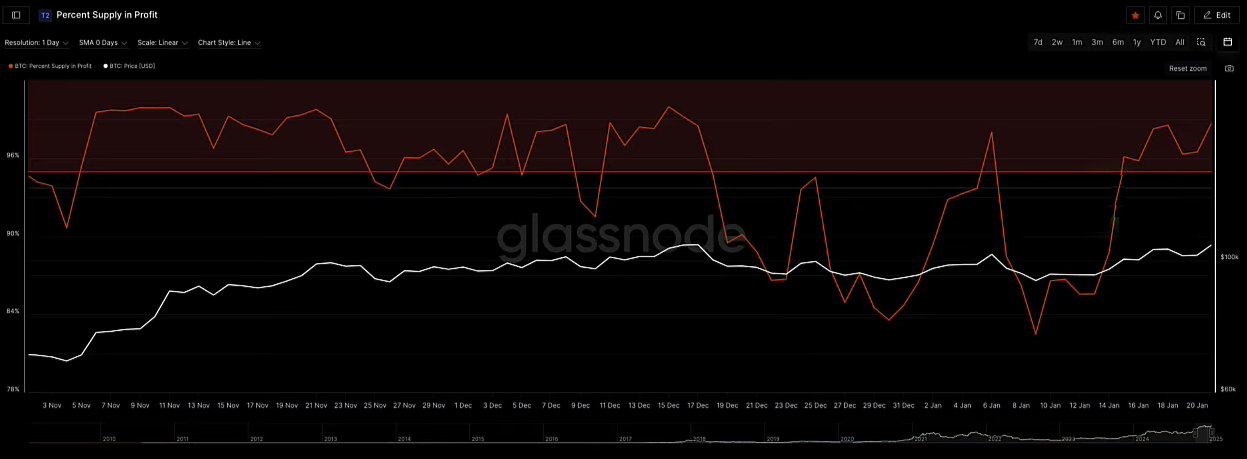 Tỷ lệ BTC có lời vẫn nằm trong vùng màu đỏ, với mức có lời 96.7%.