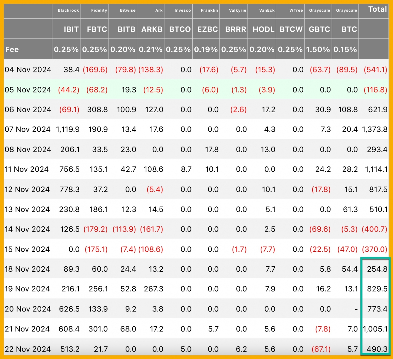 Các quỹ BTC spot ETF Hoa Kỳ đã thu vào 3.35 tỷ USD trong tuần qua. Đây là con số rất lớn cho thấy sức mua lớn vào BTC. Nguồn cung BTC trên các sàn OTC có giới hạn và với lực mua lớn như vậy sẽ dẫn tới cứ sốc nguồn cung đẩy giá BTC tăng lên.