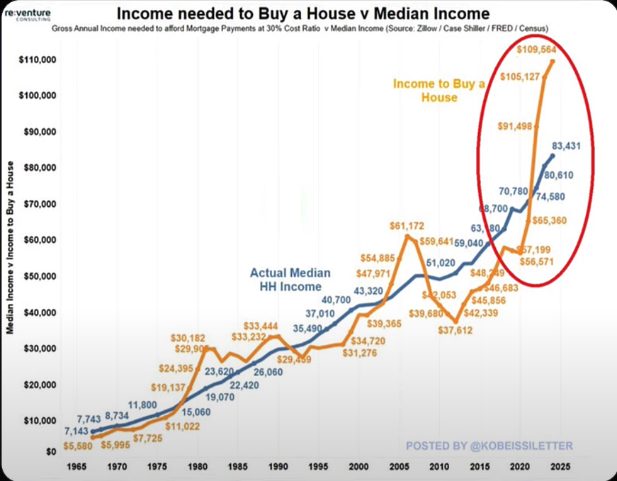 Mặc dù lãi suất của FED đã giảm nhưng giá nhà vẫn ở mức rất cao và lãi suất vay mua nhà cũng cao hơn so với trước đây khiến cho người dân không thể mua nhà. Thêm vào đó, lạm phát vẫn tăng qua từng năm và giá nhà cũng luôn là một xu hướng tăng nhanh hơn rất nhiều so với thu nhập của người dân, khiến cho cơ hội để họ có thể sở hữu nhà càng khó khăn hơn.