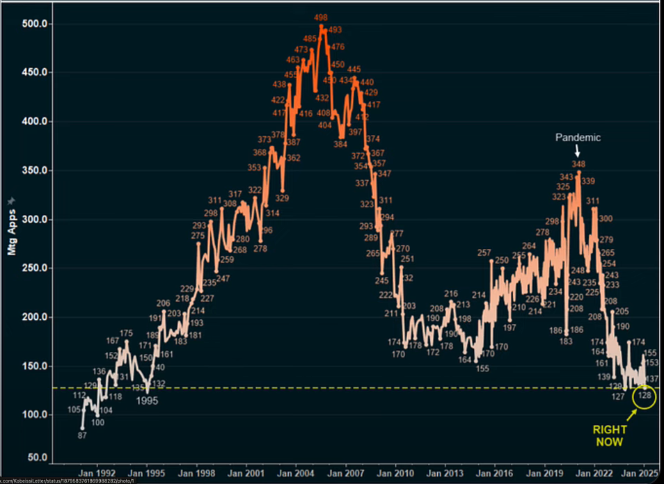 Về thị trường bất động sản vẫn đóng băng dù lãi suất đã giảm so với một năm qua. Số lượng đơn vay mượn mua nhà đã giảm ở mức thấp nhất kể từ 1995. Mức này cũng thấp hơn rất nhiều so với thời điểm bong bóng tài chính năm 2008.