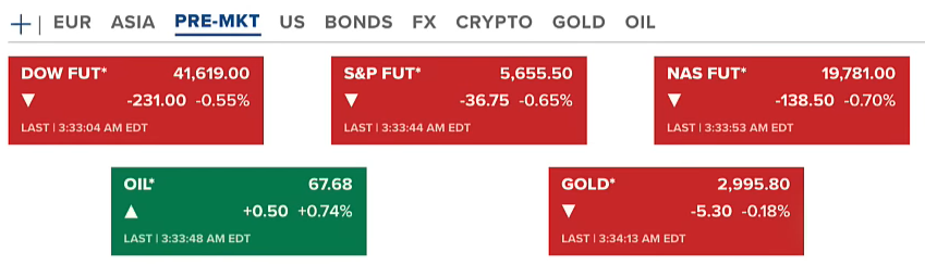 Về thị trường hợp đồng tương lai của chứng khoán Hoa Kỳ ngày chủ nhật (16/03-US) giảm ở cả ba chỉ số với mức giảm đều trên 0.55%. Hợp đồng dầu vẫn quanh mức 67 USD/thùng, giá dầu đã quanh mức này một thời gian. Hợp đồng vàng sau khi vượt mốc 3000 USD/ounce thì đã điều chỉnh nhẹ về 2995 USD/ounce.