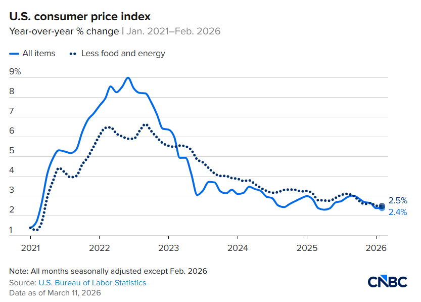 Mỹ vừa công bố dữ liệu lạm phát CPI, một thông tin quan trọng đã được thị trường dự báo trước. Kết quả cho thấy CPI tổng đạt 2.4% và Core CPI (không bao gồm năng lượng và thực phẩm) ở mức 2.5%, đúng với ước tính của thị trường, vì vậy dữ liệu này không tạo ra bất ngờ.