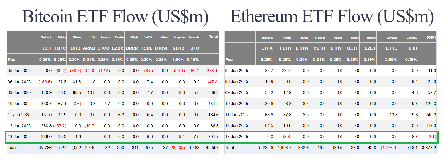 Các quỹ Bitcoin spot ETF Hoa Kỳ kết thúc thứ 6 tiếp tục có dòng tiền vào 301.7 triệu USD. Ngược lại, ETH spot ETF lại có dòng tiền rời khỏi với con số nhỏ 2.1 triệu USD.