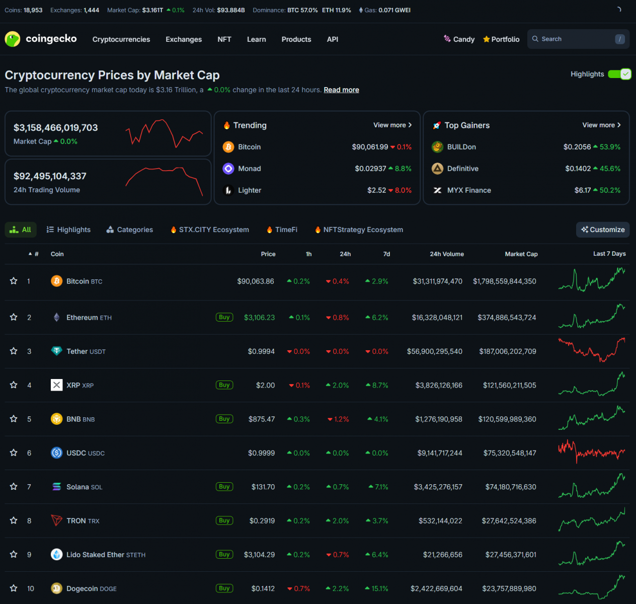 Thị trường crypto bước vào ngày giao dịch đầu tiên của năm 2026 với sắc xanh chiếm ưu thế. Bitcoin dao động quanh 90,000 USD, duy trì trên mốc này lâu nhất trong hai tuần gần đây, sau giai đoạn liên tục bị đẩy ngược về vùng 83,000–87,000 USD. Các altcoin lớn tăng nhẹ hoặc đi ngang. Tổng vốn hóa thị trường crypto ở mức 3.15 nghìn tỷ USD.
