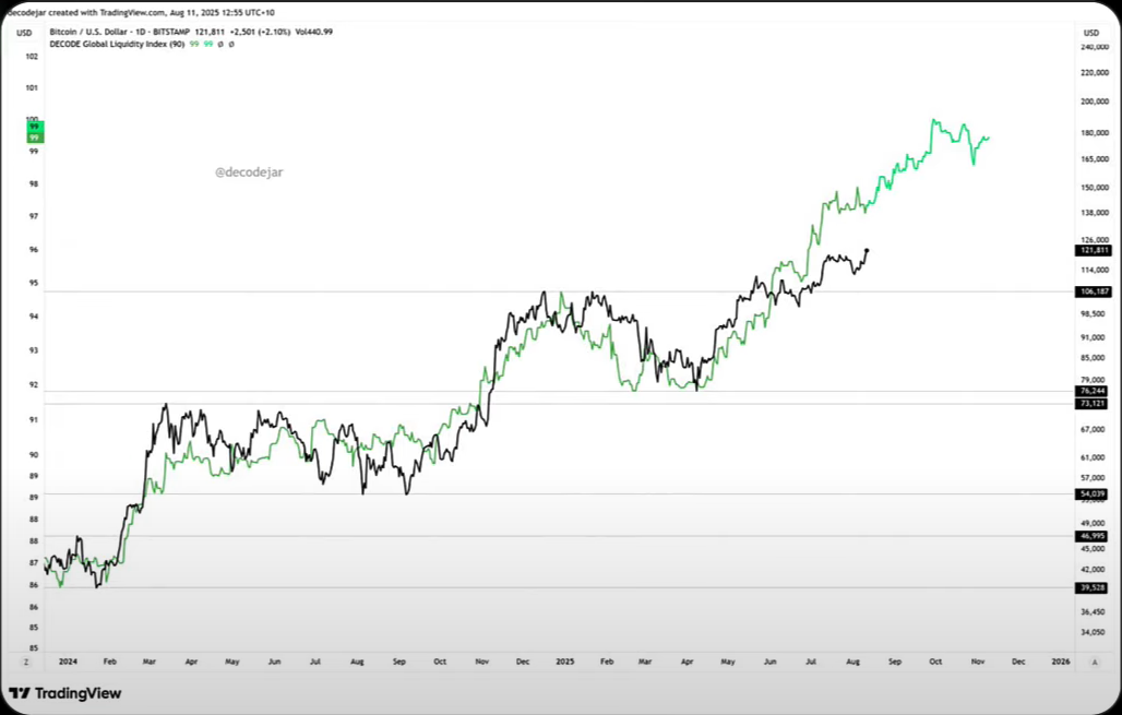 Theo quan sát, M2 thường đi trước diễn biến giá Bitcoin khoảng 2–3 tháng.