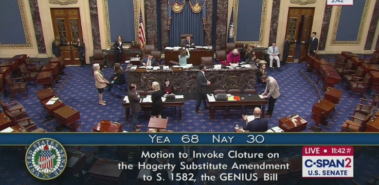 Phiếu thủ tục cloture cho dự luật GENIUS (liên quan đến Stablecoin) đã được thông qua với tỷ lệ 68–30.