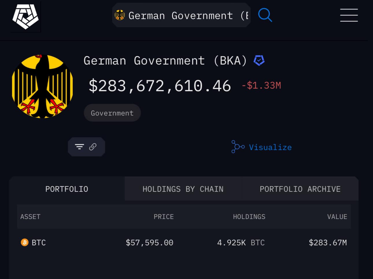 Có thể bởi lực mua của các quỹ BTC ETF này đã giúp giá BTC không tiếp tục giảm dù có lực bán từ chính phủ Đức. Ngày qua, chính phủ Đức đã tiếp tục di chuyển số BTC còn lại, giờ họ chỉ còn 283 triệu USD từ con số ban đầu khoảng 3 tỷ USD.