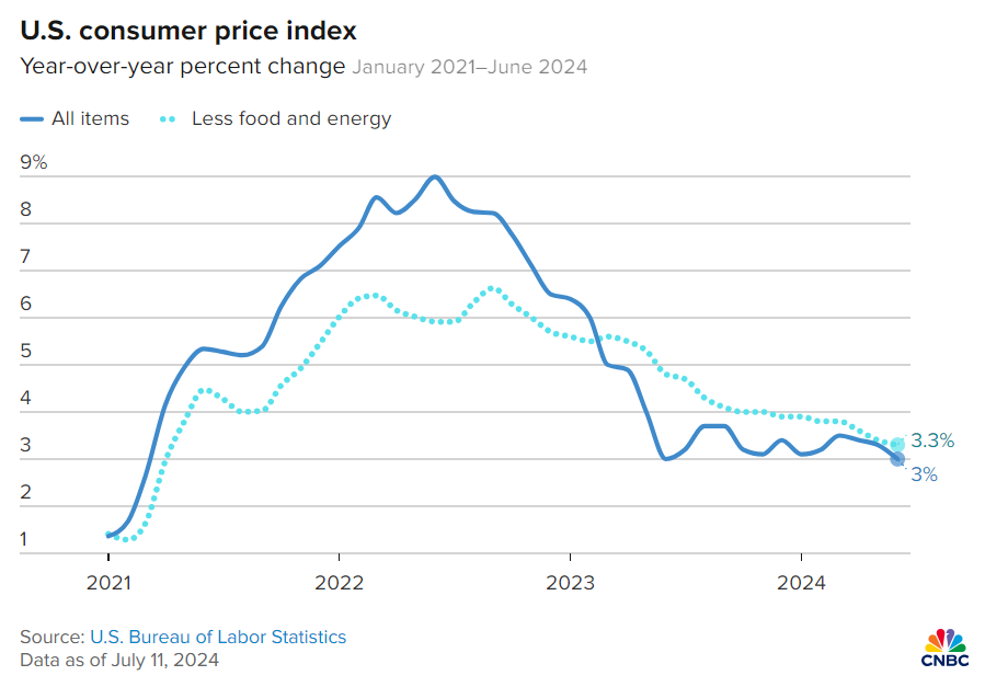 Chỉ số CPI giảm 0.1% so với tháng 5, lạm phát 12 tháng ở mức 3%, quanh mức thấp nhất trong hơn ba năm. Loại trừ chi phí năng lượng và thực phẩm dễ biến động, Core CPI đã tăng 0.1% hàng tháng và 3.3% so với một năm trước. Mức tăng lãi suất cơ bản hàng năm là nhỏ nhất kể từ tháng 4 năm 2021. Giá xăng giảm 3.8% đã kìm hãm lạm phát trong tháng, bù đắp cho mức tăng 0.2% của cả giá thực phẩm và nơi trú ẩn. Chỉ còn hai chỉ số là chi phí thuê nhà và chi phí vận chuyển vẫn đang ở mức cao.