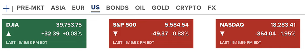 Chứng khoán Hoa Kỳ kết thúc thứ năm (11/07) với Dow Jones đi ngang, S&P 500 giảm 0.88% còn Nasdaq giảm lên dến 1.95%. Dù tin tức CPI tốt nhưng chứng khoán Hoa Kỳ lại giảm.