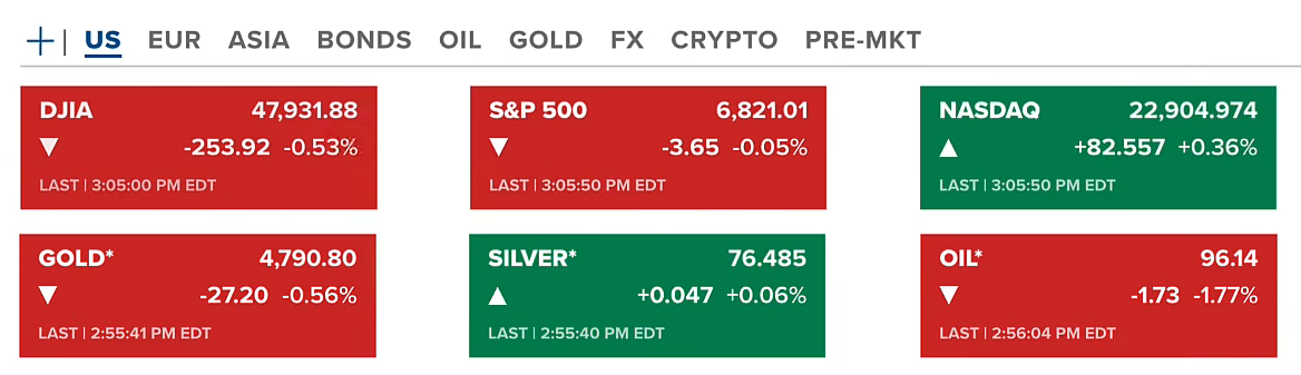 Chứng khoán Hoa Kỳ gần cuối phiên thứ sáu (10/04-US) có Dow Jones giảm 0.53%, S&P 500 giảm 0.05% còn Nasdaq hồi nhẹ 0.36%. Hợp đồng vàng giảm nhẹ quanh 4790 USD/ounce, bạc đi ngang quanh 76.48 USD/ounce. Còn dầu tiếp tục giảm nhẹ quanh 96.14 USD/thùng.