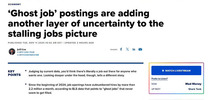 Thị trường việc làm cũng gây chú ý khi xuất hiện khái niệm “ghost jobs”, những tin tuyển dụng ảo chỉ nhằm thu thập hồ sơ ứng viên, khiến số liệu việc làm bị phóng đại. Khoảng cách giữa số vị trí tuyển dụng và số người được nhận đã lên tới hơn 2.2 triệu, phản ánh thực tế rằng nhiều công ty đăng tuyển nhưng không có ý định tuyển thật. Dù tỷ lệ thất nghiệp vẫn ổn định, xu hướng giảm dần số người tìm được việc làm và ảnh hưởng từ công nghệ AI có thể dẫn đến rủi ro gia tăng thất nghiệp trong tương lai.