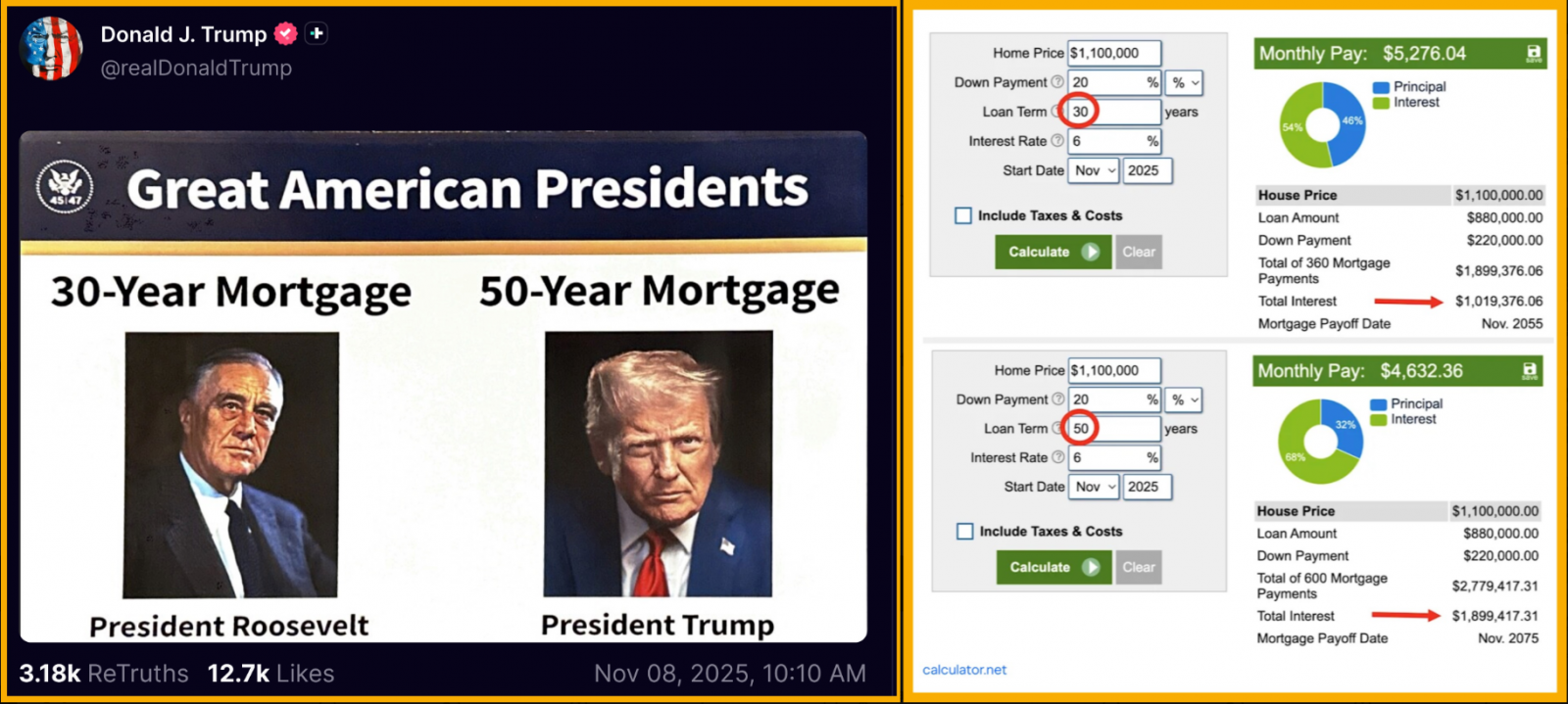 Tổng thống Trump đăng trên Truth Social ý tưởng về khoản vay mua nhà 50 năm, so sánh với khoản vay 30 năm của thời Tổng thống Franklin D. Roosevelt. Đề xuất này gây nhiều tranh cãi xung quanh nó.