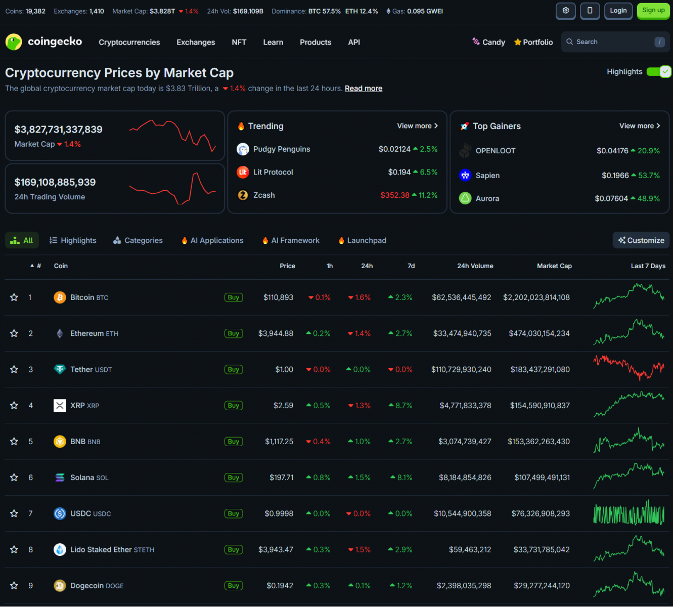 Về crypto, Bitcoin cũng giảm có thời điểm xuống dưới 109,000 USD và sau đó hồi lại quanh 110,000 USD. Hầu hết altcoin lớn giảm hoặc đi ngang. Vốn hóa thị trường crypto giảm xuống 3.82 nghìn tỷ USD.