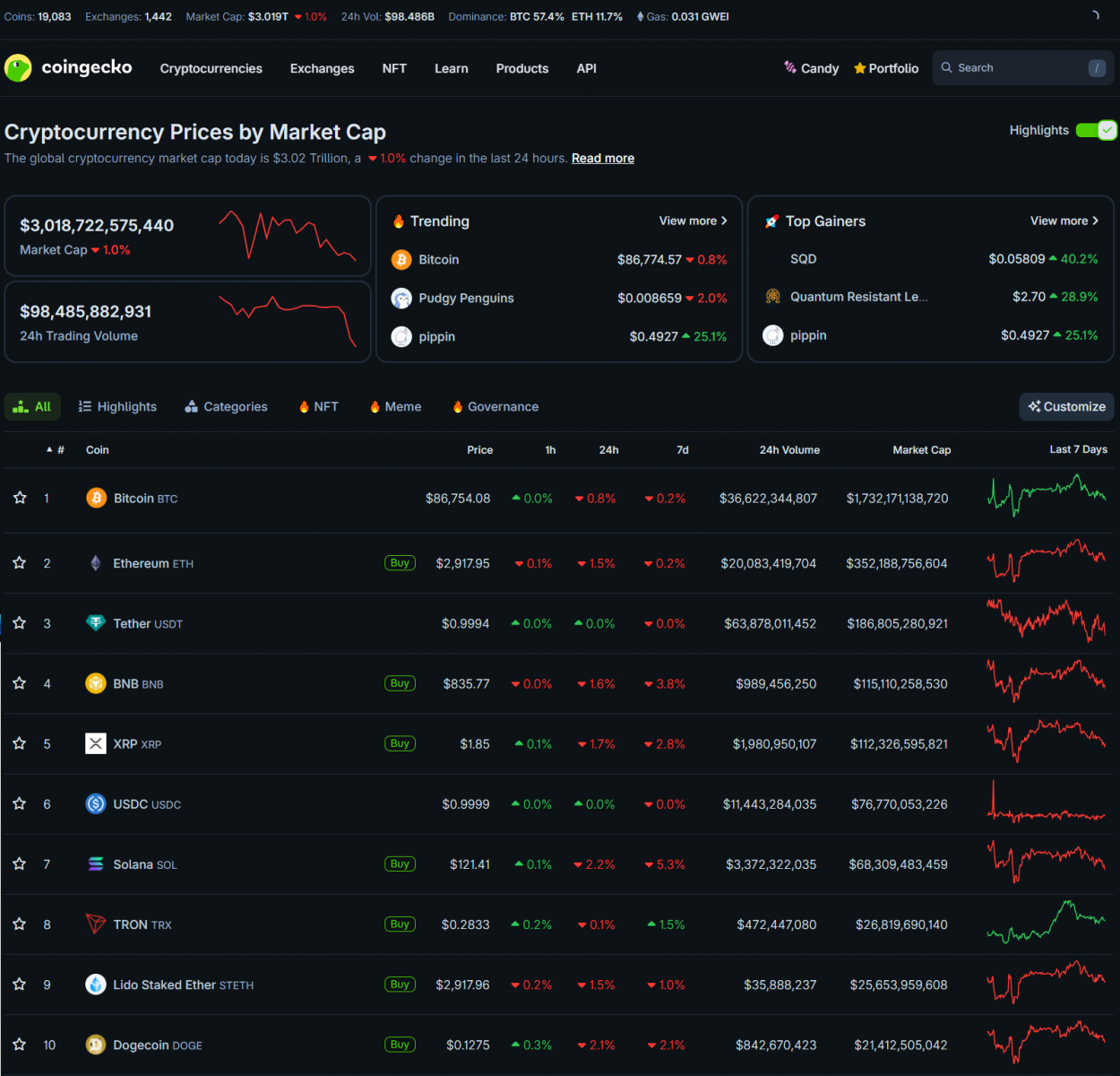 Bitcoin giảm nhẹ về 86,000 USD. Hầu hết altcoin đều giảm. Vốn hóa thị trường crypto giảm về 3.01 nghìn tỷ USD.