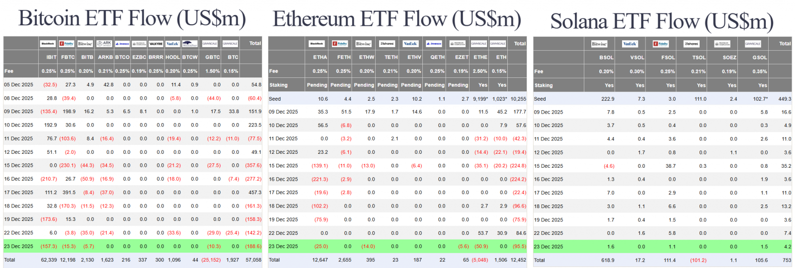 Ngày thứ sáu cuối cùng của năm sẽ có khoảng 23.48 tỷ USD hợp đồng quyền chọn Bitcoin đáo hạn, với mức max pain khoảng 96.000 USD, khá xa vùng giá hiện tại nên khả năng bị kéo mạnh là thấp. Ethereum có khoảng 3.88 tỷ USD quyền chọn đáo hạn với max pain gần 3,100 USD, có thể gây dao động nhẹ, nhưng do trùng kỳ nghỉ Giáng sinh, thị trường nhiều khả năng vẫn biến động hạn chế.
