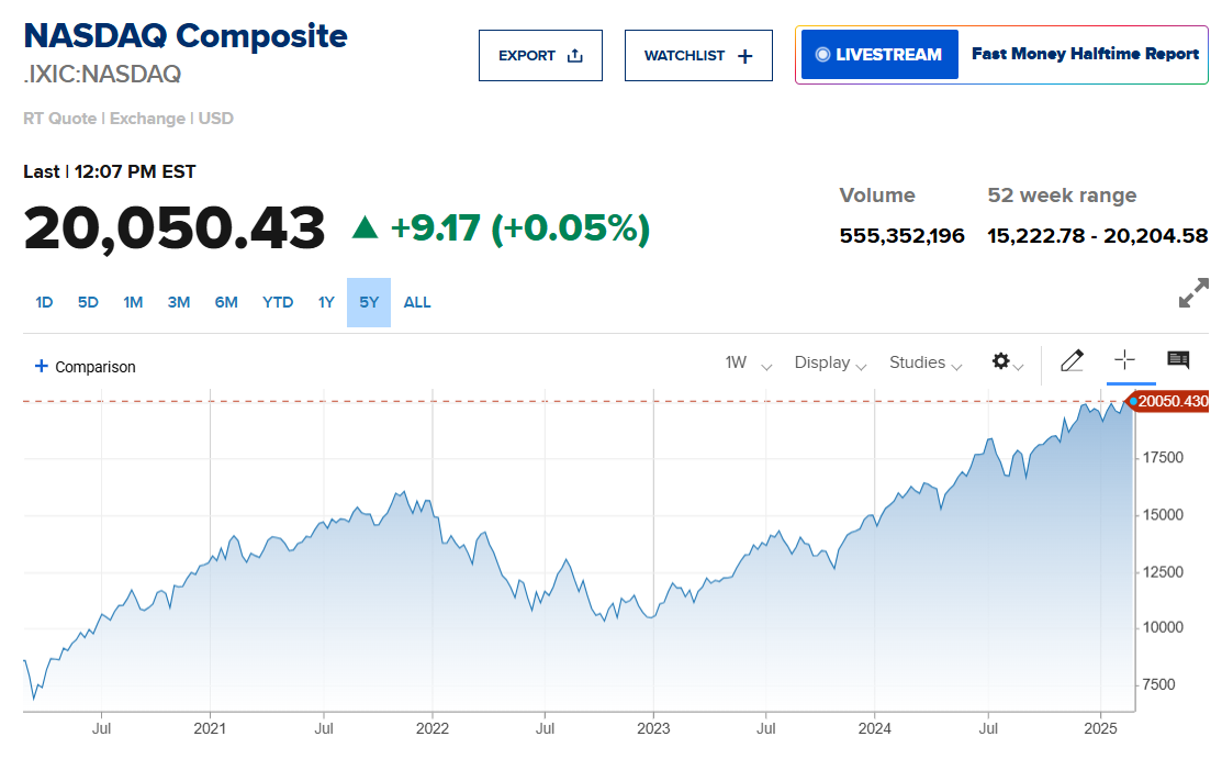 Trên thị trường chứng khoán, chỉ số NASDAQ, đại diện cho các công ty công nghệ Hoa Kỳ, hiện chỉ còn cách mức đỉnh cũ chưa đến 1%. Trái ngược với những lo ngại trước đây về Deepseek AI, chiến tranh Nga – Ukraine hay những sự kiện khác có thể gây sụp đổ thị trường, thực tế cho thấy giá trị tài sản vẫn tiếp tục tăng.