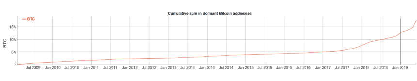 Một tài liệu khác được đưa ra ngày hôm nay đó chính là bài viết được đưa ra bởi NewBTC, nội dung chính của bài viết nói rằng: Hiện bây giờ, tổng số lượng BTC không di chuyển trong vòng hơn 1 năm đã tăng lên hơn 12.58 triệu BTC, tính theo giá đo la hiện tại là tương đương 100 tỷ đô la Bitcoin đã không di chuyển hơn 1 năm qua. Con số này là một con số rất lớn khi mà các bạn so sánh với tổng số vốn hóa của Bitcoin trên Market Cap hiện bây giờ chỉ có hơn 127 tỷ đô la.