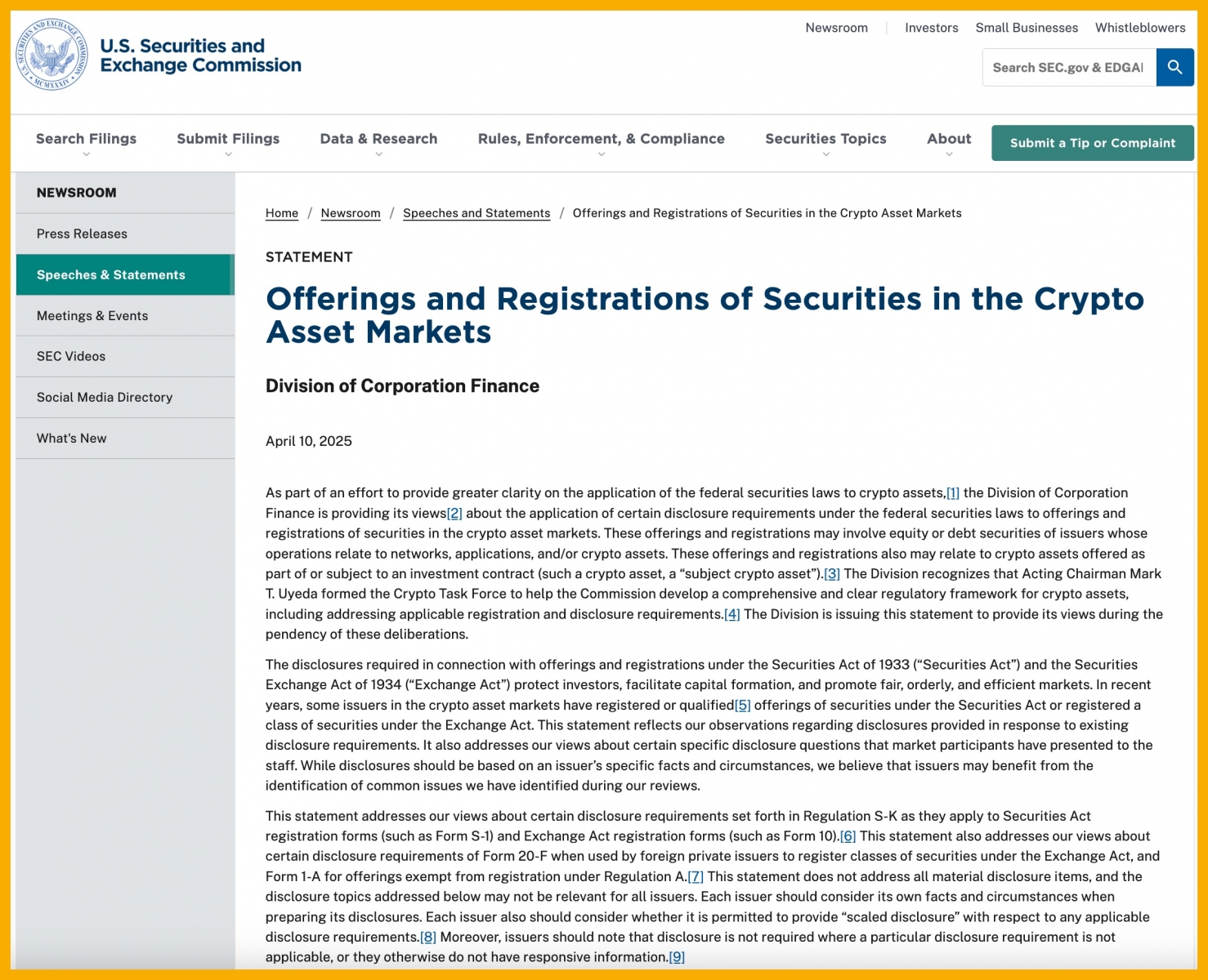 Hướng dẫn của SEC (Hoa Kỳ) về crypto 2025