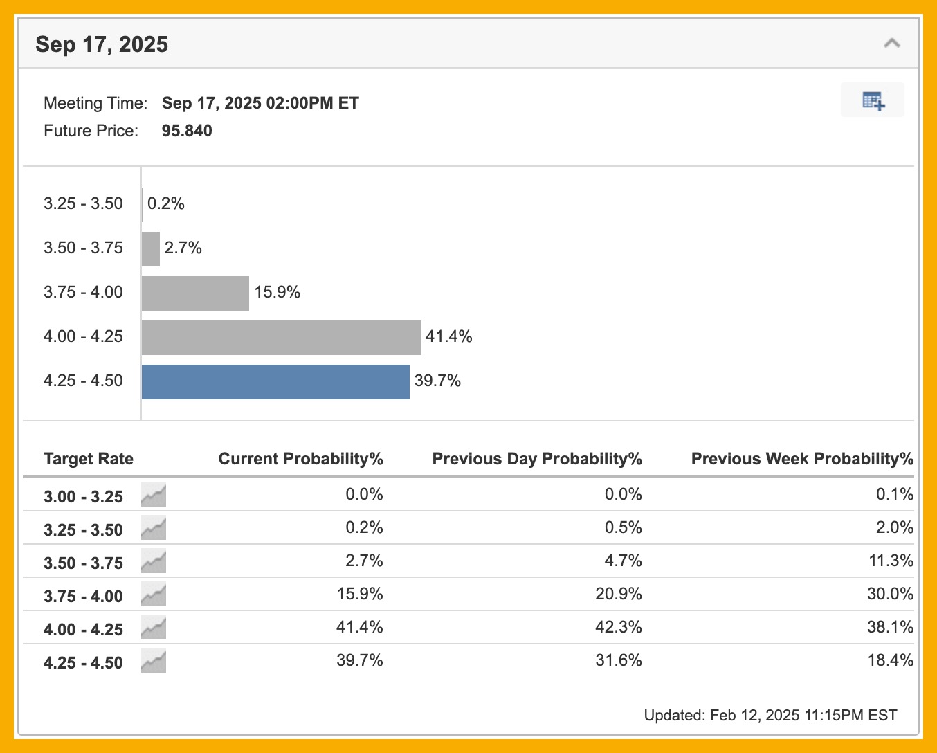 Dữ liệu từ CME cho thấy đợt cắt giảm lãi suất đầu tiên có thể bị hoãn đến tháng 9, thay vì tháng 6 như dự đoán trước đó.