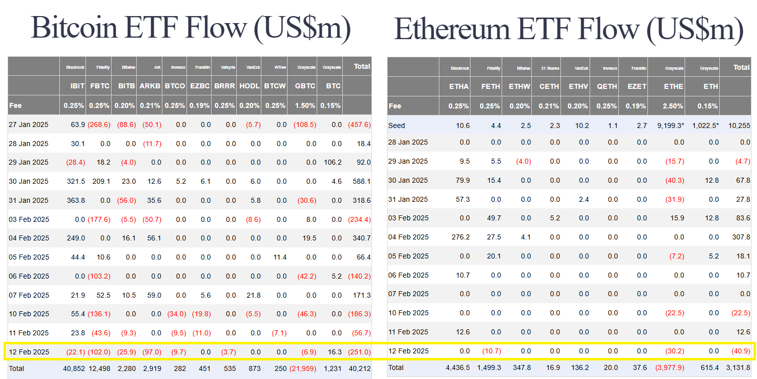 Các quỹ BTC spot ETF Hoa Kỳ đã tiếp tục có phiên thứ tư là dòng tiền rời khỏi với con số 251 triệu USD. Đây cũng là phiên giao dịch hiếm hoi quỹ IBIT của BlackRock có dòng tiền ra. Cùng chung xu hướng, ETH spot ETF cũng đã có dòng tiền rời khỏi 40.9 triệu USD.