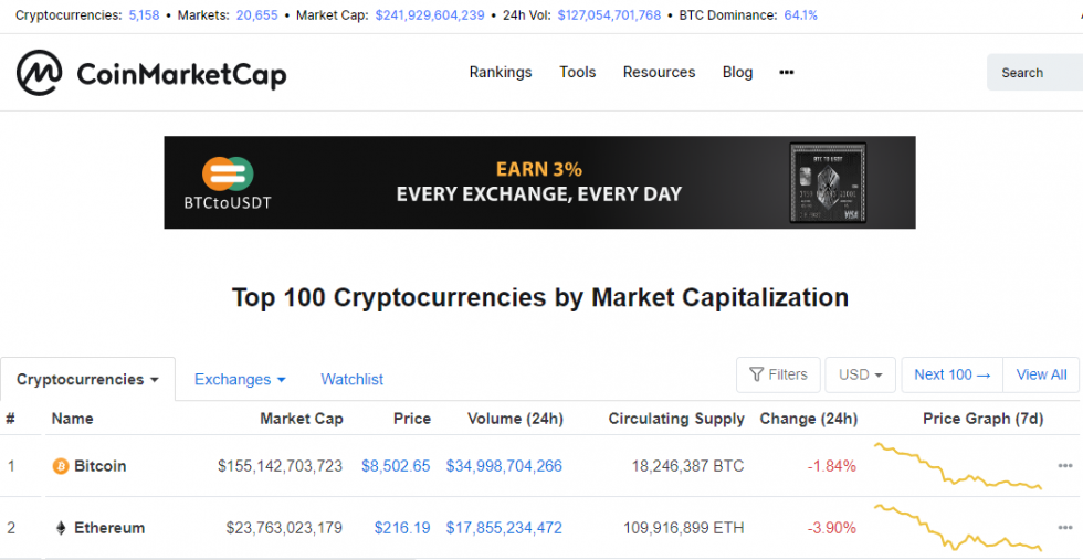 Cập nhật giá bitcoin đến ngày 29/02/2020 thì giá bitcoin giảm thấp nhất xuống đến hơn 8.520 USD. Đây là ngày giảm giá tiếp theo của bitcoin khi nhìn chung 2 tuần qua.