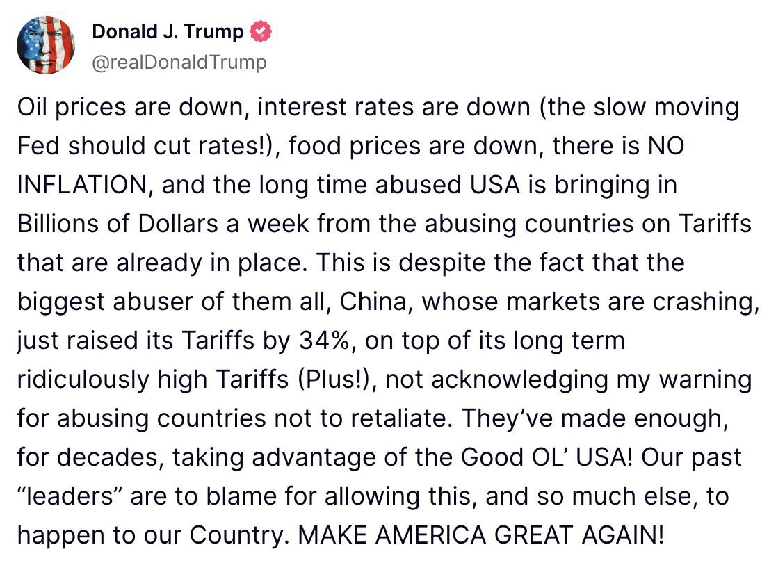 Ngoài ra, ông nhấn mạnh rằng sự giảm mạnh gần 15% của giá dầu chỉ trong hai ngày gần đây mang lại lợi ích thiết thực cho người lao động nhiều hơn là những biến động trên thị trường chứng khoán, bởi phần lớn người dân Mỹ — đặc biệt là tầng lớp trung lưu và lao động — không sở hữu cổ phiếu, mà chịu ảnh hưởng trực tiếp từ chi phí sinh hoạt.