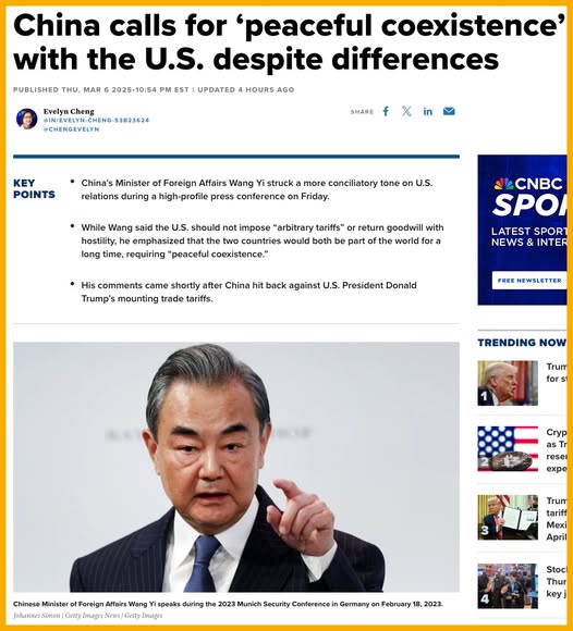 Không giống như giọng điệu hiếu chiến của Đại sứ quán Trung Quốc ngày trước đó, trong một cuộc họp báo quan trọng ngày qua, Bộ trưởng Ngoại giao Trung Quốc Vương Nghị đã kêu gọi “chung sống hòa bình” với Mỹ dù vẫn còn nhiều bất đồng.