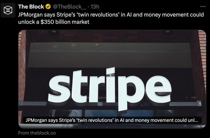 Song song, JPMorgan cũng nhận định “cuộc cách mạng kép” mà Stripe đang dẫn đầu trong lĩnh vực trí tuệ nhân tạo (AI) và chuyển tiền có thể mở ra thị trường trị giá tới 350 tỷ USD vào cuối thập kỷ này. Việc Stripe ra mắt blockchain Tempo cùng các thương vụ mua lại gần đây được xem là dấu hiệu cho thấy sự trở lại mạnh mẽ của công ty trong lĩnh vực hạ tầng tiền điện tử, khi thương mại do AI thúc đẩy ngày càng phát triển.