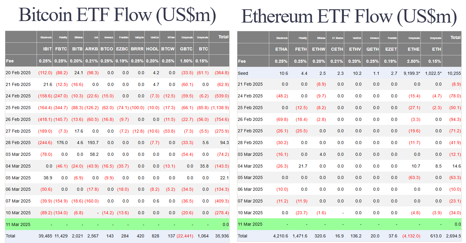 Không ngoại lệ, các quỹ BTC spot ETF Hoa Kỳ cũng tiếp tục là phiên có dòng tiền rời khỏi. Tổng số tiền rời khỏi các quỹ BTC ETF là 278.4 triệu USD. Các quỹ ETH spot ETF cũng có dòng tiền ra 34 triệu USD.