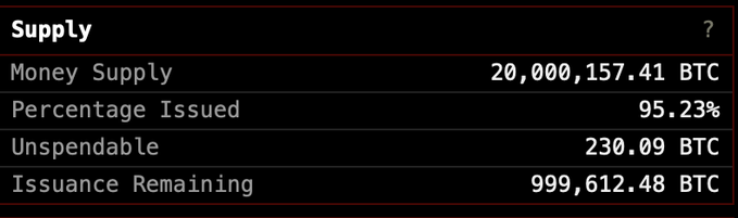 Gần như toàn bộ Bitcoin đã được đào. Trong tổng nguồn cung tối đa 21 triệu BTC, khoảng 20 triệu BTC đã được đào kể từ khi Bitcoin ra đời vào năm 2009, nghĩa là khoảng 95% nguồn cung đã được tạo ra trong khoảng 17 năm đầu tiên. Tuy nhiên, khoảng 1 triệu BTC còn lại sẽ mất hơn một thế kỷ để đào, với phần Bitcoin cuối cùng dự kiến xuất hiện vào khoảng năm 2140. Tốc độ phát hành chậm dần này xảy ra vì phần thưởng khối bị cắt giảm một nửa khoảng mỗi 4 năm. Mọi người đang đọc bài này, bao gồm cả Paolo, nhiều khả năng sẽ không sống đến ngày đó.