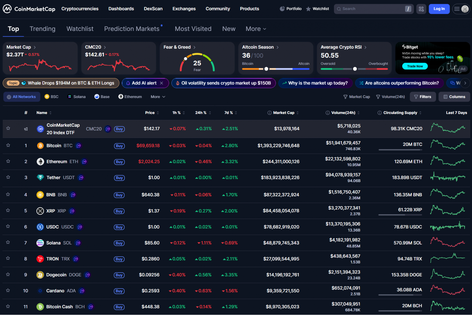 Bitcoin không thay đổi nhiều về giá cả và vẫn quanh mức 69,000 USD. Các altcoin lớn có một số đồng giảm, một số khác tăng nhẹ. Vốn hóa thị trường crypto giảm còn 2.37 nghìn tỷ USD.