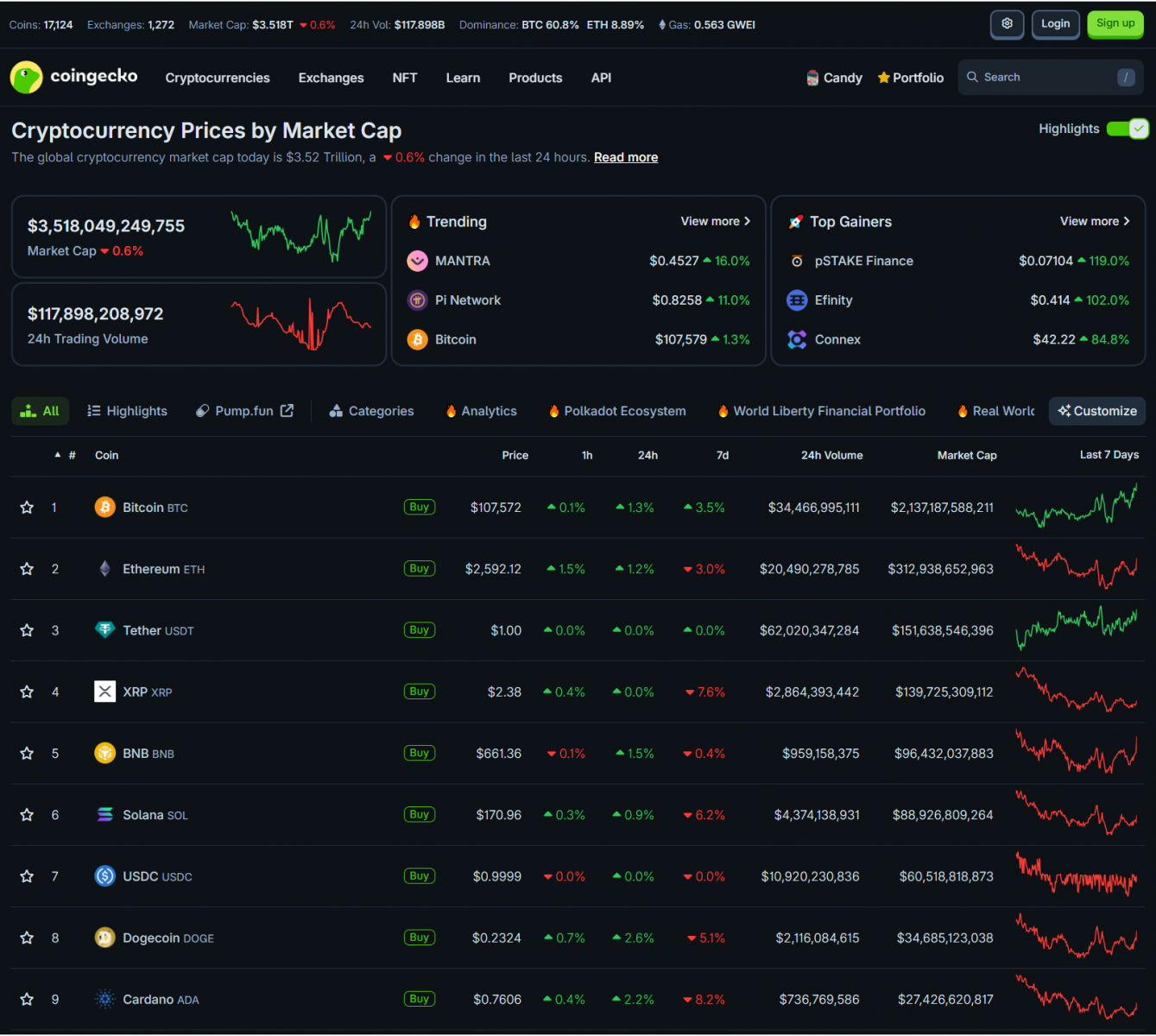 Bitcoin có thời điểm đã tăng lên mức 107,000 USD. Bitcoin ghi nhận mức đóng nến ngày cao nhất trong lịch sử ở mức 106.800 USD. Hầu hết altcoin lớn tăng. Vốn hóa thị trường crypto ở quanh mức 3.518 nghìn tỷ USD.