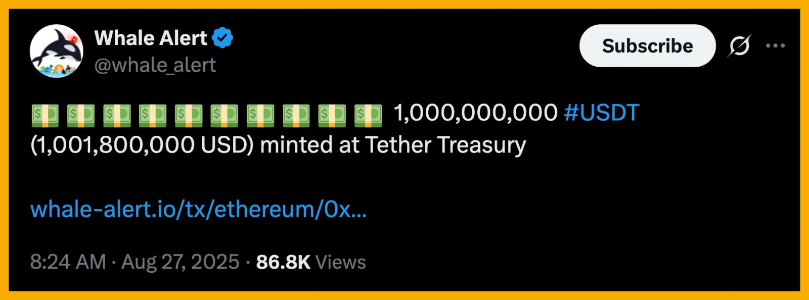 Thời gian qua Tether tiếp tục in USDT. Đây vẫn là tín hiệu tốt cho thị trường crypto cho thấy nhu cầu đồng ổn định đổ vào thị trường.